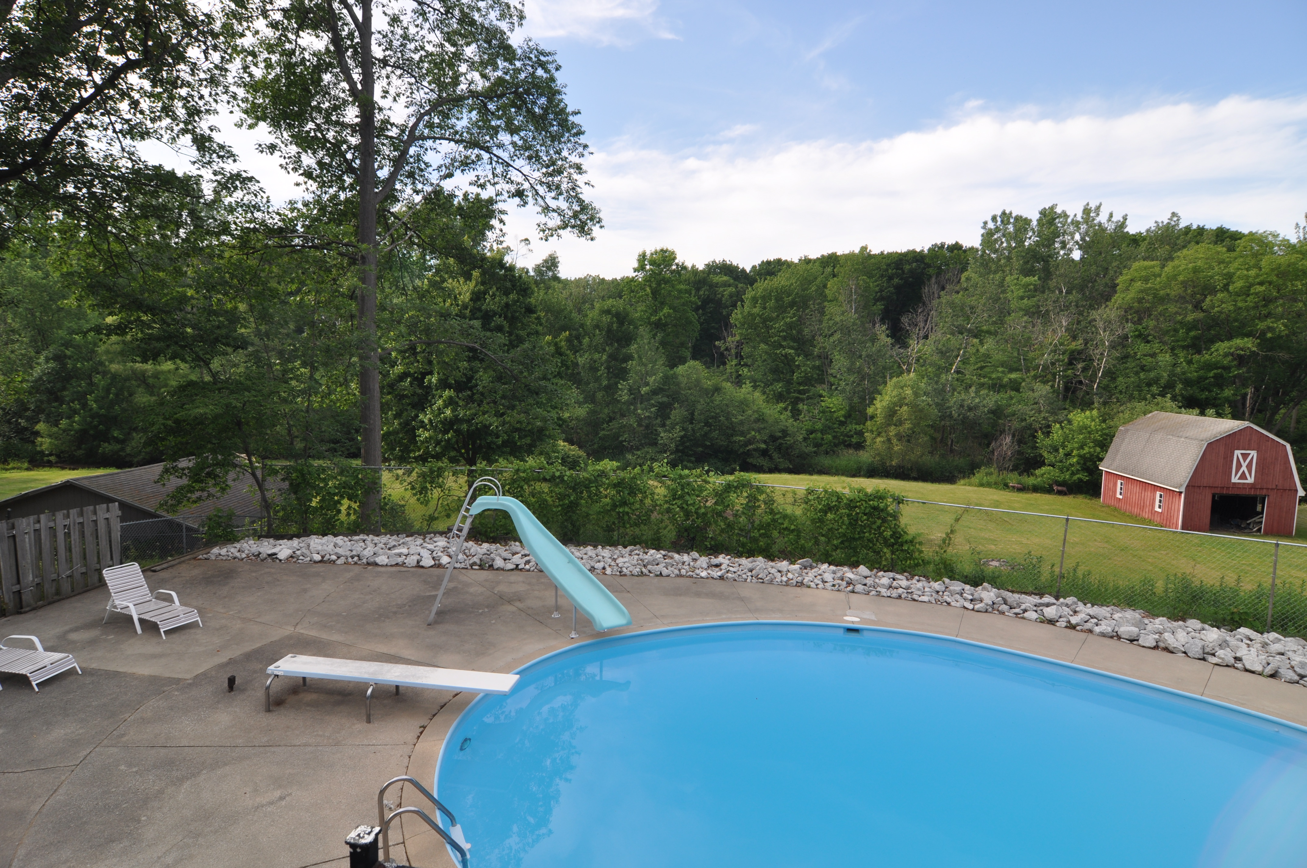 You’ve found your new home!! This spacious home has over 2,000 finished square feet and offers 4 bedrooms, 2 bathrooms, a spacious kitchen with snack bar and two living spaces. Head outside through your huge screened-in porch to your heated in-ground swimming pool with a slide. Above the screened-in porch is a large balcony over looking the pool. House sits on nearly one acre, with a 20×28 hip-roof barn towards the back of the property with Pine Creek running along the property line.
