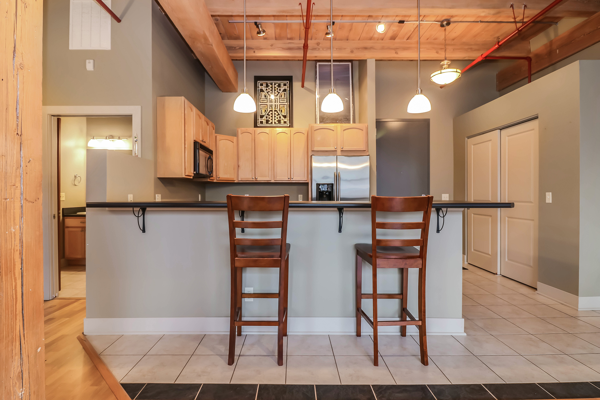Beautiful second floor condo with great views of Prospect Park. This unique condo has an open floor plan, old beams, sandblasted bricks, and picture windows in the living room and master bedroom. The spacious kitchen has stainless steel appliances, ample storage and bar seating. The master bedroom has a large windows and walk-in closet. The bathroom has double sinks and walk-in shower. This condo offers storage above two closets and the laundry room is oversized. The unit comes with a private storage room down the hallway (to the right of the unit). This unit comes with a City of Holland Rental Certificate good through August 2022. Condo development also has a movie theater, conference space, game room, outdoor grill and patio.